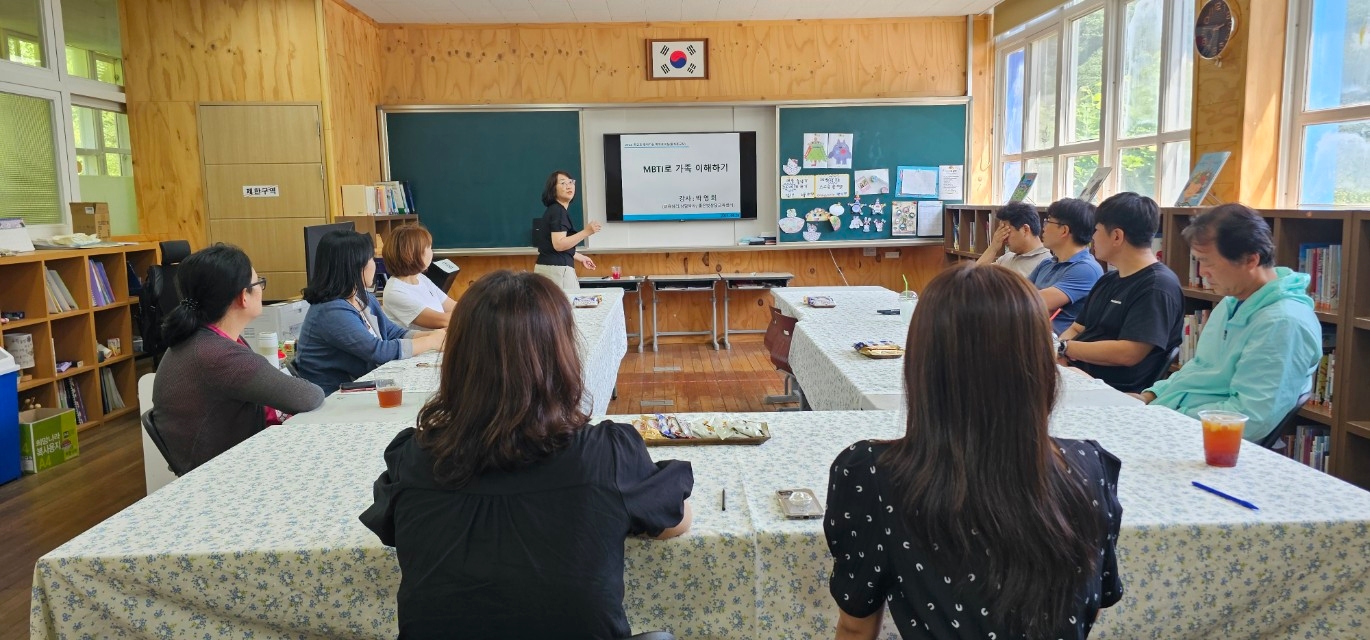 오늘은 "MBTI로 자녀 이해하기"라는 주제로 학부모 교실이 운영되었습니다.검사지로 직접 나의 MBTI 유형도 알아보고, 16가지 유형의 학부모가 각각 자녀를 어떻게 대하는지, 어떤 점을 주의해야하는지 등에 대해 알아보기도 하였습니다.오늘의 연수를 계기로 서로의 특징을 알고 더욱 더 서로 잘 이해하는 행복한 가정이 되길 기대해봅니다.^^바쁘신 와중에도 참석해 주신 학부모님들 고맙습니다.^^